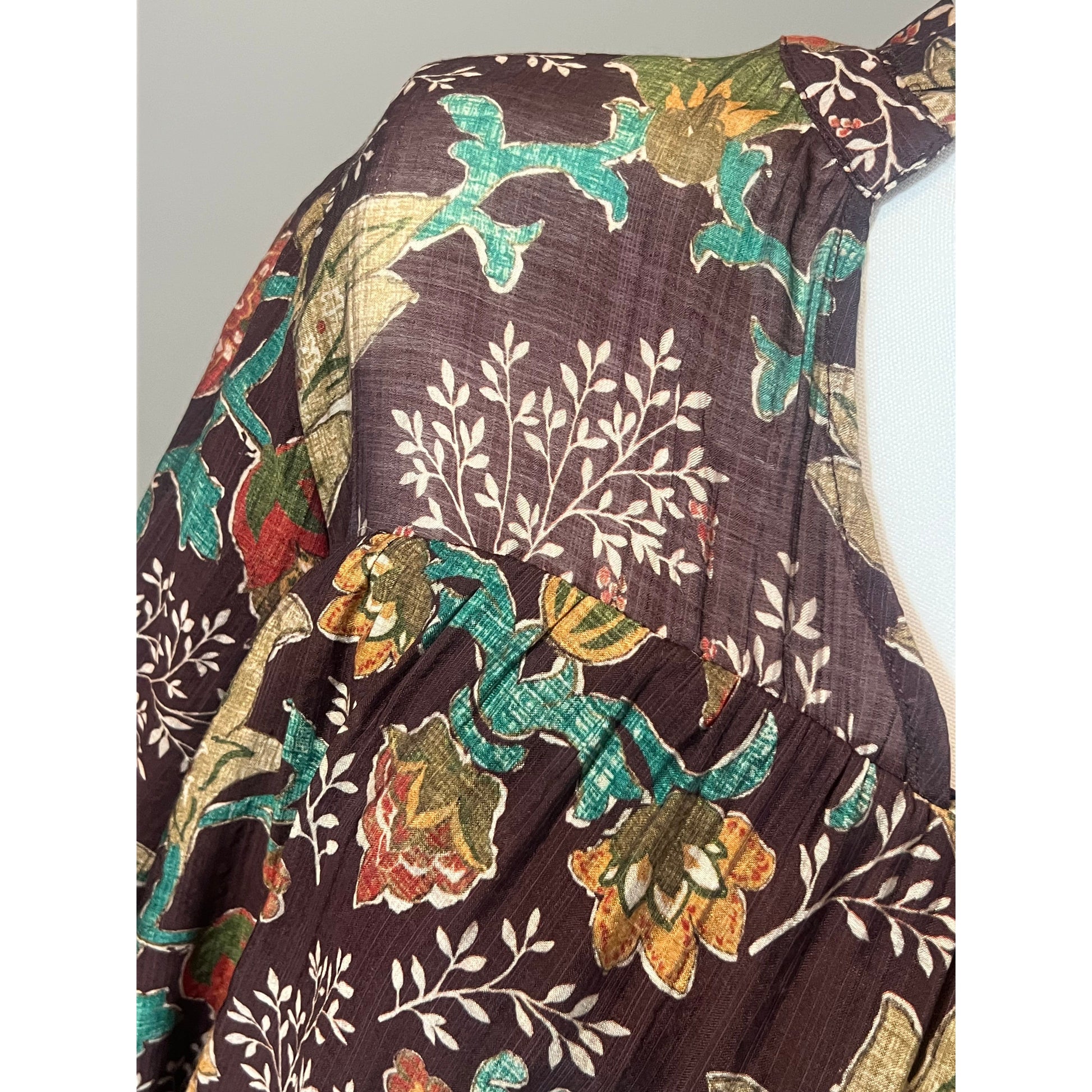 The Curvy Alice Top is designed with a V-neck highlighted by gentle ruffle accents and 3/4 length balloon sleeves. It provides a loose, flowing fit and is lined for enhanced comfort. This top is perfect for embracing the changing temperatures of the fall season.