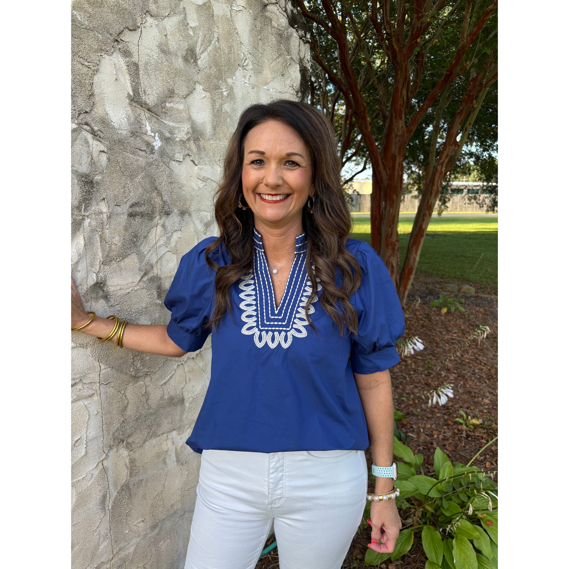 The Carla Top is a must-have for any fashion-forward individual. With striking embroidered details and a versatile color, this top is sure to be a staple in your wardrobe. Pair it with white denim and your favorite heels or wedges for a chic, elevated look. Elevate your style game effortlessly with our Carla Top.