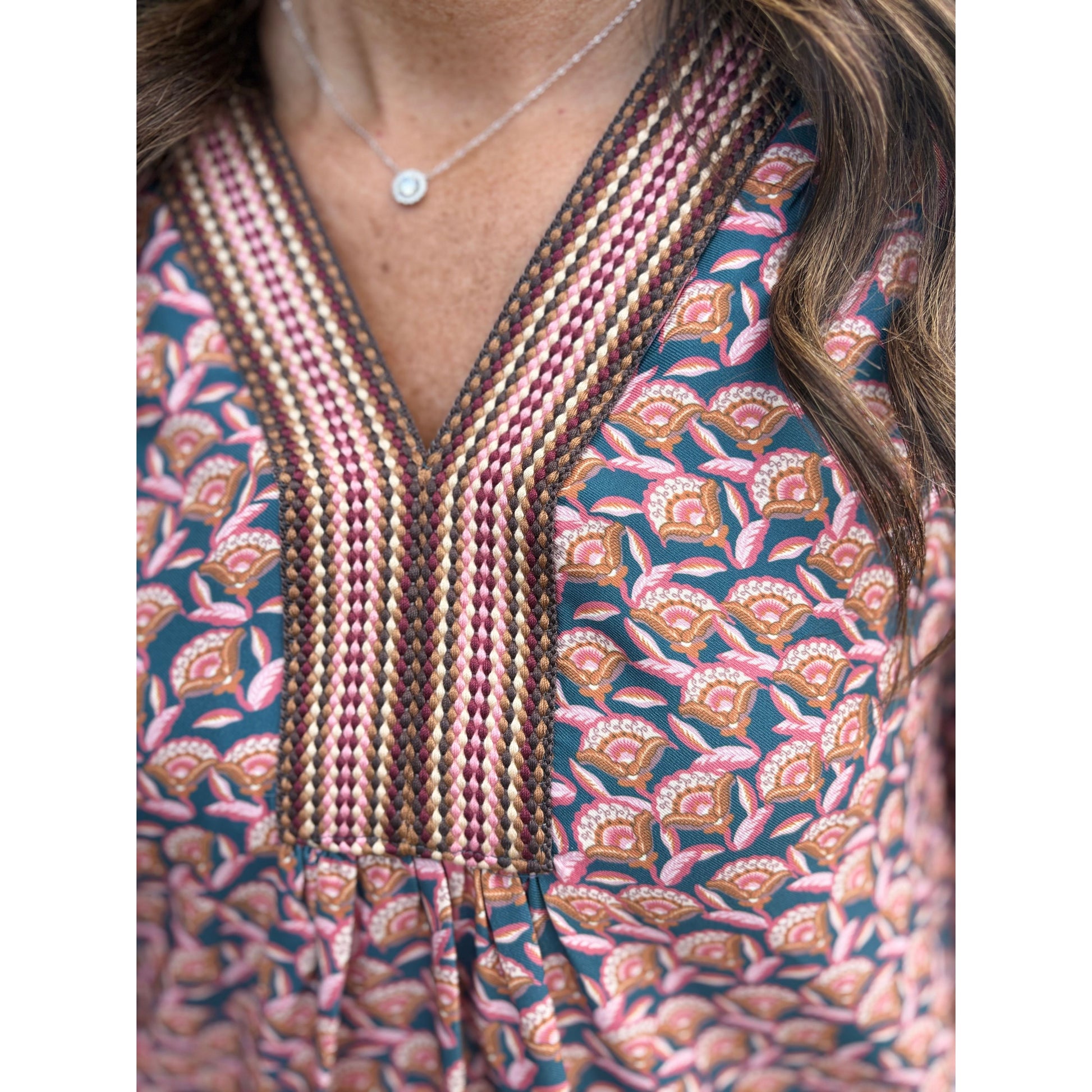 The Cecilia Mini Dress showcases a V-neckline complemented by puff sleeves and a distinctive patch woven print, complete with practical pockets for everyday ease. Perfectly paired with wedges or booties for a cute and comfortable fall feel!