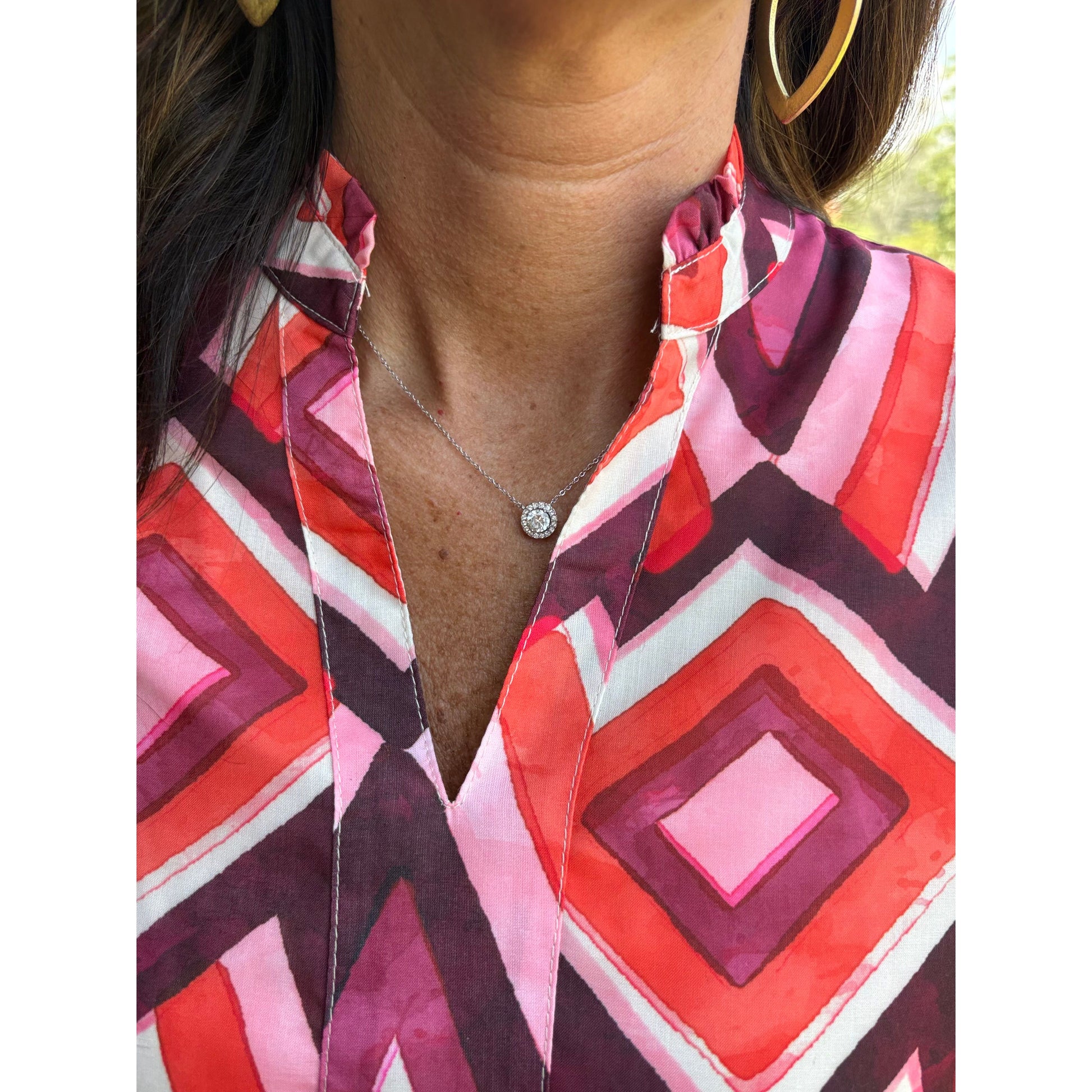 The Malia Dress features a flattering V-neckline and puffed sleeves for a stylish look. Made from patterned fabric, it suits both day and evening wear. The tailored fit enhances curves while providing comfort, classic and modern design for versatile style.