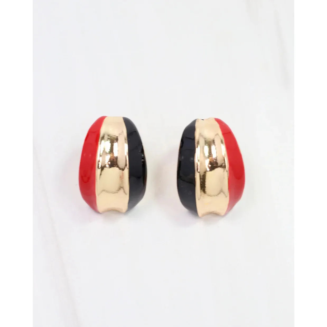 The Penney Hoop Earrings in Red and Black add team spirit with vibrant enamel and a gold center. These wide semi-hoops offer a stylish way to show your pride.